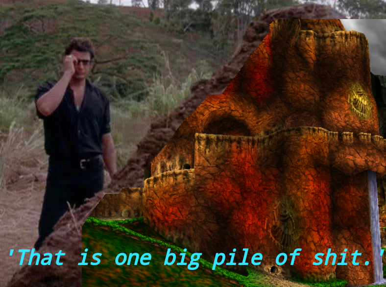 Other than the commonly-cited issues with Terrydactyland's size and the amount of "empty space", one of my personal biggest gripes was that the level was visually boring because of it--large stretches of muddy-brown eyesore textures with not a lot around to break up the monotony. Not only would a redesign like this improve the scale, but it'd also feel better to inhabit. |